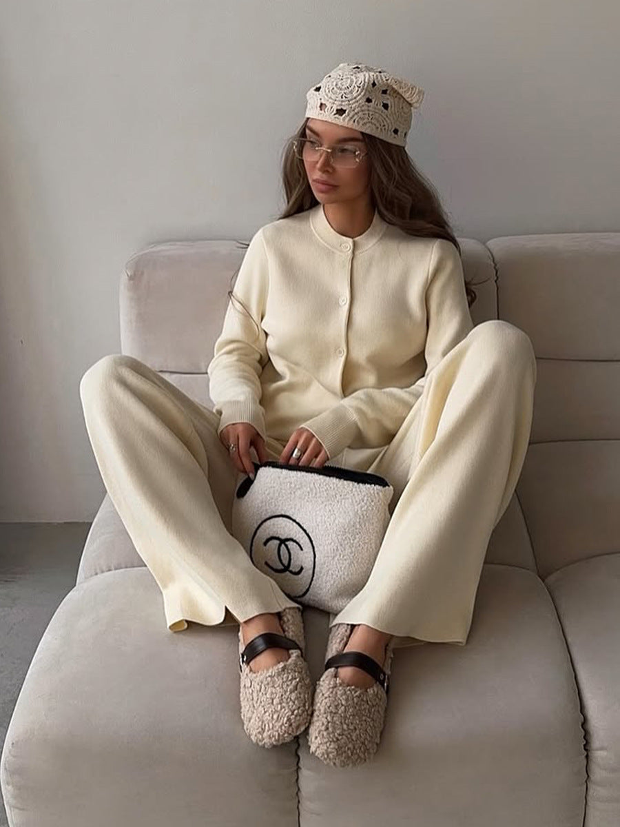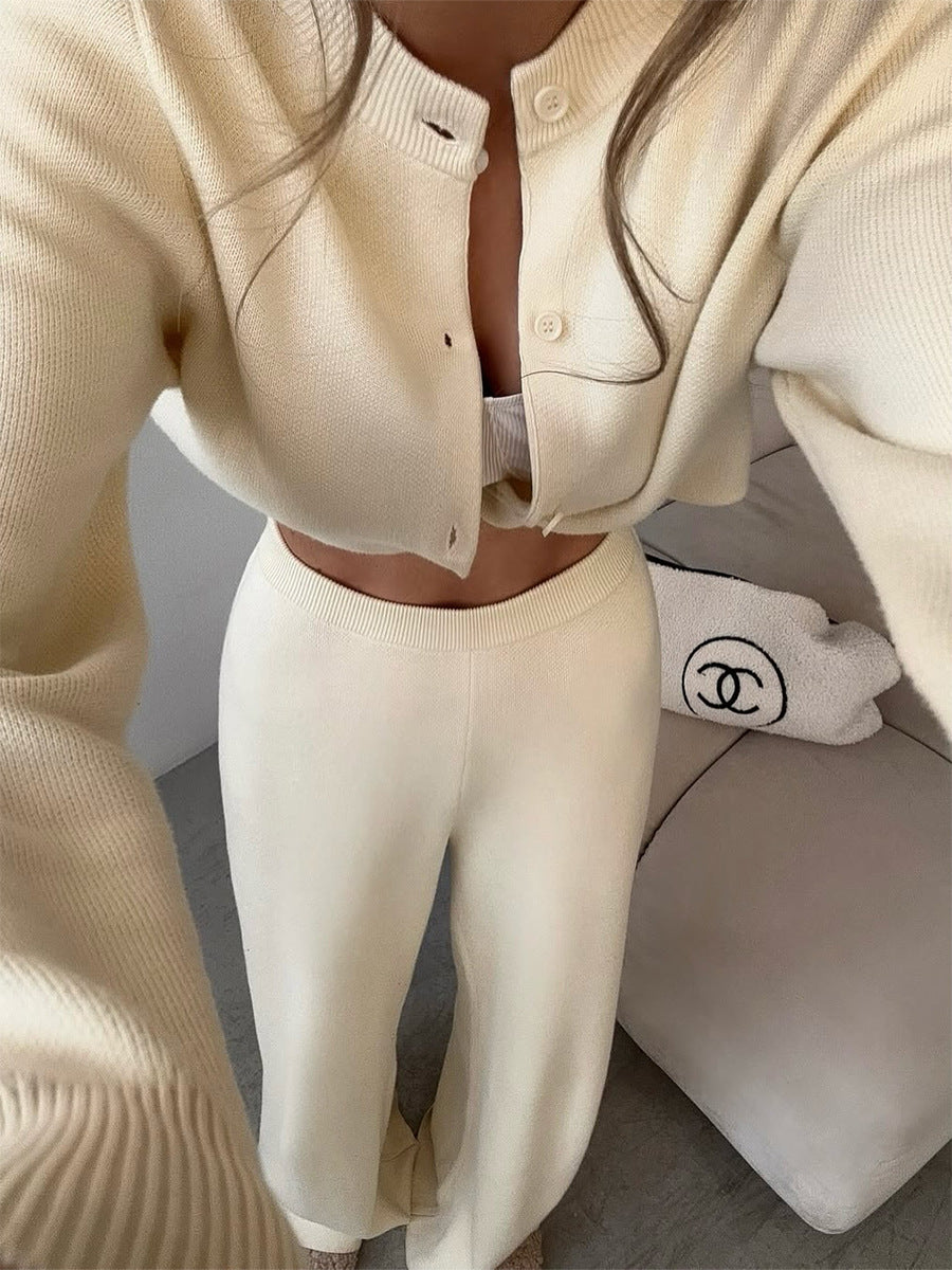 š Chic Comfort: Knitted Cardigan & Wide-Leg Pant Set